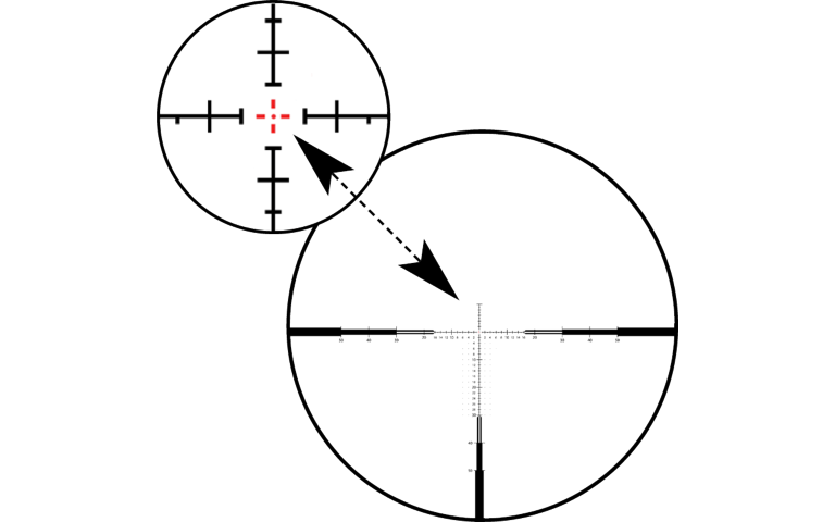 The ZF-MRi smart reticle was designed with professional input from active competitors and instructors. Its purpose is to dominate at PRS and NRL matches. The milliradian (MRAD) reticle incorporates a “tree-style” primary structure with useful hash marks, dots, and reference numbers –without the clutter. The points-of-aim and holds are represented in 0.2, 0.5, and 1.0 MRAD increments; and even numbers are displayed for fast and intuitive visual reference. If winning is your goal, then the ZF-MRi reticle was made for you.